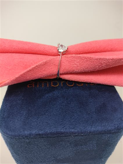 ANELLO IN ORO BIANCO 18 KT CON ZIRCONE NO COLOR TAGLIO A CUORE.