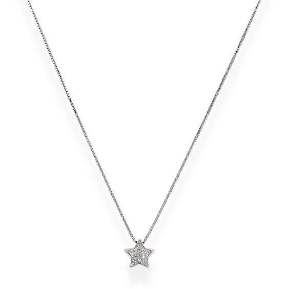 Collana in Argento 925/°°° con stella tempestata di zirconi; lunghezza 42 cm