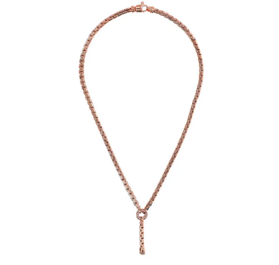 Collana Bronzallure realizzata in lega Golden Rosé, placcata Oro rosa 18kt, con maglia veneziana e pendente a filo con dettaglio in pavé di cubic zirconia, qualità luminosa. Lunghezza 47.5. Chiusura a moschettone. Lega brevettata Golden Rosé Designed and made in Italy Nickel free, cadmium free Ipoallergenica Materiale: Golden rose Lunghezza (cm): 47.5 Peso (g): 19.7