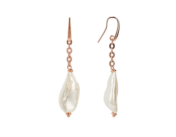 Orecchini pendenti Bronzallure realizzati in lega Golden Rosé, placcata oro rosa 18kt, impreziositi da catena rolo e da perle Barocche coltivate d'acqua dolce bianche dalla forma irregolare, chiusura ad amo. Lega brevettata Golden Rosé Designed and made in Italy Pietre naturali selezionate Nickel free, cadmium free Ipoallergenici Materiale: Golden rose Peso (g): 9.18