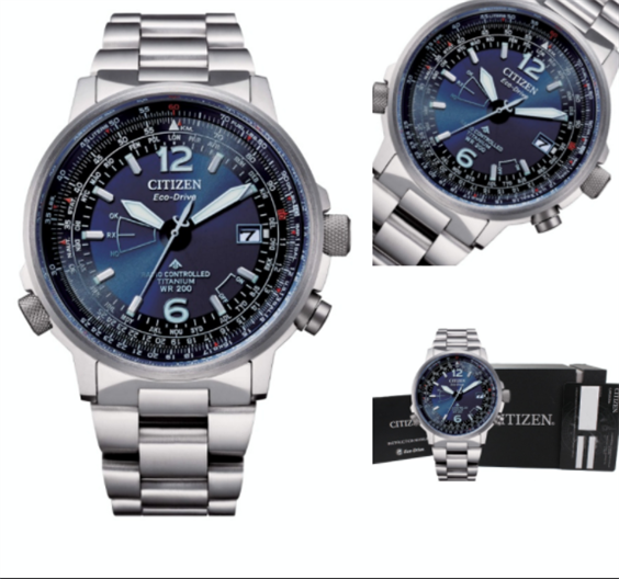 Orologio Solo Tempo Uomo Collezione PILOT RADIOCONTROLLATO. Cassa e bracciale in Super Titanio spazzolato diametro 42,5mm. corona a vite, ansa bracciale 22mm. Movimento Eco-Drive a carica luce con riserva di carica di 2 anni. Radiocontrollato a 5 canali: ricezione segnale orario USA, Europa, Giappone, Cina. World time con orario di 26 città del mondo. Calendario Perpetuo. Funzione di ricezione onde radio automatica e manuale. Visualizzazione stato ricezione e conferma risultato ricezione. Funzione di risparmio energetico. Quadrante blù con cifre e lancette luminose, ghiera interna girevole con sistema regolo calcolatore aereonautico. Vetro zaffiro. Bracciale regolabile in Super Titanio , chiusura deployante con sicurezza e pulsanti. Impermeabile 20 atm.(200 mt.).Scatola libretto istruzioni e garanzia 2 anni originali.