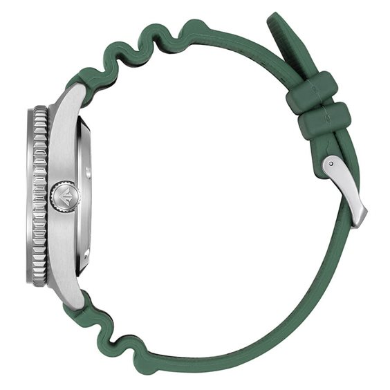 Orologio Solo Tempo Collezione Citizen Promaster Automatic Diver's 200 mt.(certificato ISO).Cassa in acciaio spazzolato con ghiera unidirezionale verde, fondo e corona serrati a vite. Movimento meccanico automatico day-date Citizen cal.8204 riserva di carica 42 ore 21600 a/h e ferma secondi. Quadrante verde, indici e lancette ad alta luminosità. Vetro minerale ad alta resistenza. Cinturino in gomma verde fibbia con ardiglione in acciaio. Impermeabile 20 bar (20 atm.) Scatola (bombola) e garanzia 5 anni originali.