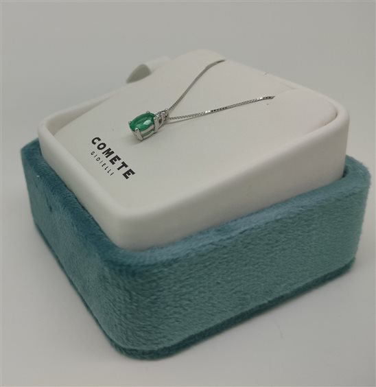 GIROCOLLO IN ORO BIANCO 750 MILLESIMI (18KT) MAGLIA VENEZIANA CON SMERALDO CT0,43.PENDENTE IMPREZIOSITO DA DUE PICCOLI DIAMANTI TAGLIO BRILLANTE DA CT 0,01 CIASCUNO.