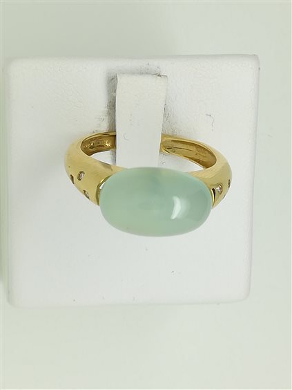 Anello donna in oro giallo con quarzo azzurro/verde e diamanti