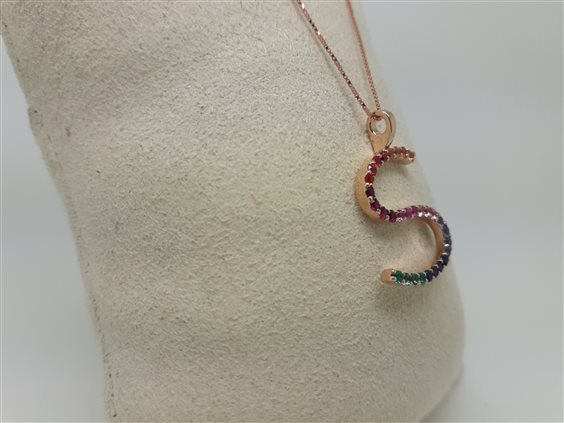 GIROCOLLO DA DONNA MAGLIA VENEZIANA IN ORO ROSA 18 KT,CON PENDENTE A FORMA DI S CON ZAFFIRI MULTICOLOR.
