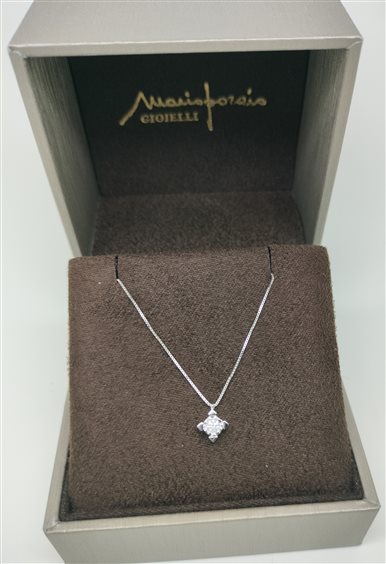 RAFFINATO GIROCOLLO IN ORO BIANCO 750 MILLESIMI (18KT),CON DIAMANTE TAGLIO BRILLANTE CT 0,05.GIOIELLO REALLIZATO IN ITALIA.