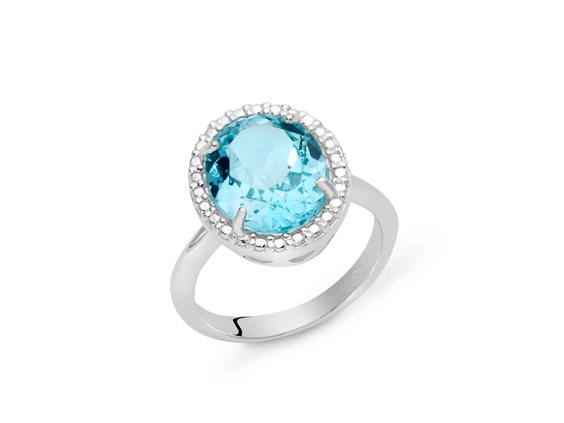 L'eleganza intramontabile della Gemma del Cielo, a forma ovale, incastonata in un anello di valore, senza tempo. Gemma = Topazio naturale azzurro mm. 10x12 carati 5,82 Materiale = Argento 925% Misura anello = 14