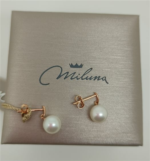 Orecchini in oro rosa con perla naturale diametro 7-7,5.Chiusura con farfallina.