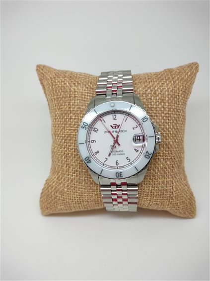 Orologio Philip Watch Caribe Diving - R8223216503 - Philip Watch experience: Lady, Genere : Donna, Materiale e finitura cassa: Acciaio, Misura cassa: 3,5 cm, Spessore cassa: 11,85, Finitura cassa: Polish, Vetro: Vetro zaffiro, Materiale cinturino: Bracciale in metallo, Colore cinturino: Argento, Chiusura: Double push buckle, Movimento: Automatico, Swiss made: Sì, Water resistant: 30 atm, Garanzia: Ufficiale 2 anni Philip Watch, Confezione: Originale Philip Watch