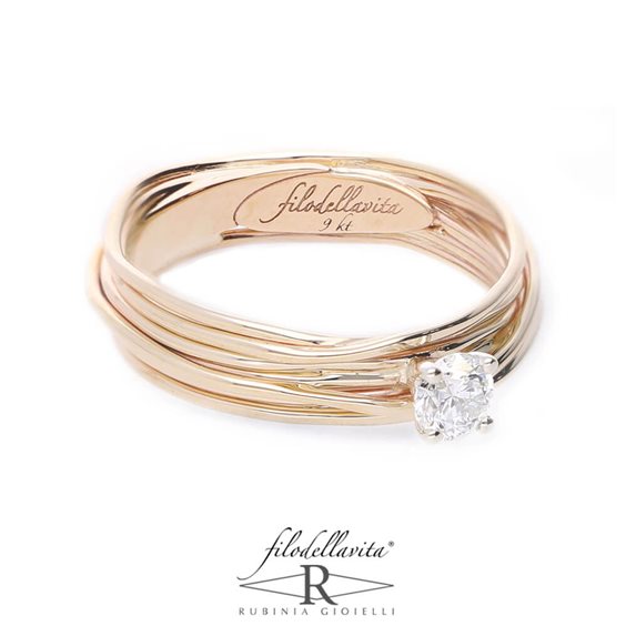 ANELLO SOLITARIO DA DONNA COMPOSTO DA PIU FILI DI ORO GIALLO 9KT,CON DIAMANTE TAGLIO BRILLANTE 0,14CT.MISURA ANELLO 14.