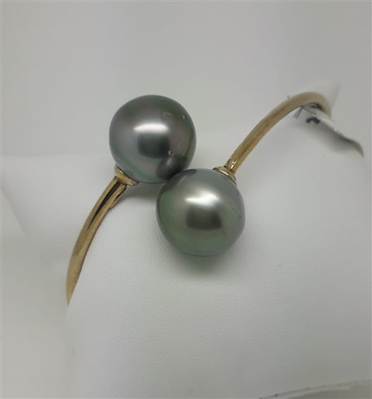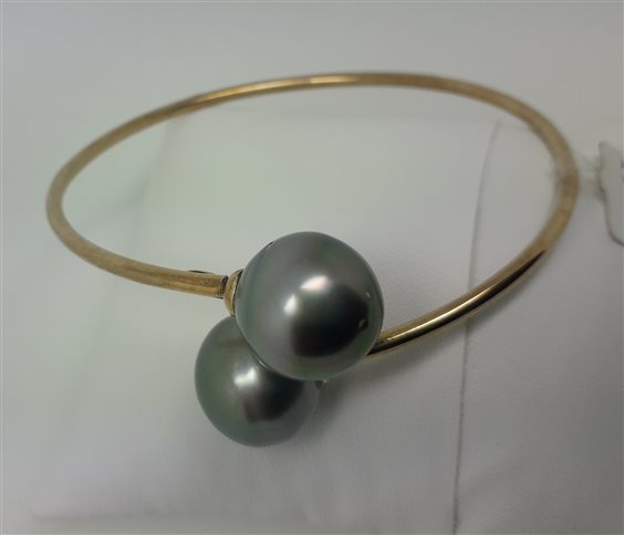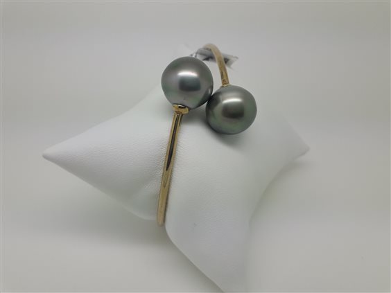 SINGOLARE BRACCIALE RIGIDO IN ARGENTO DORATO CON PERLE DI TAHITI.