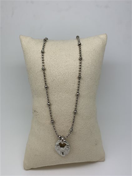 COLLANA IN ARGENTO CON PENDENTE A FORMA DI LUCCHETTO.LUNGHEZZA REGOLABILE DA 40 A 45 CM.