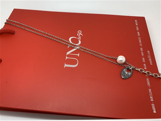 COLLANA IN ARGENTO CON PENDENTE IN CATENA ARGENTO PIU PERLA BIANCA.LUNGHEZZA 75 CM.