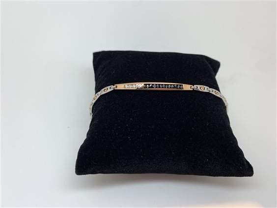 BRACCIALE IN ORO BIANCO CON DETTAGLI IN ORO GIALLO 18KT.PIASTRA CENTRALE CON DIAMANTI BIANCHI E NERI CT 0,800.