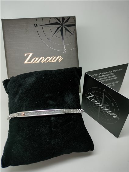 Particolare bracciale in argento con targa impreziosita da brillante di ct 0.015 su castone oro rosa e "polvere" di diamante nero ct 0.11