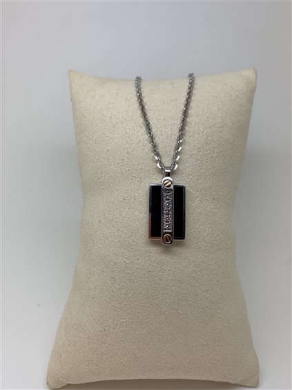 GIROCOLLO DA UOMO IN ARGENTO 925/00 CON PENDENTE NERO IMPREZIOSITO DA PIETRE BIANCHE.PRODOTTO IN ITALIA.