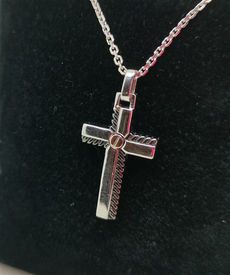 COLLANA IN ARGENTO RODIATO 925 CON DETTAGLIO IN ORO ROSATO.MISURA COLLANA 50CM,CROCE 2,5 CM.